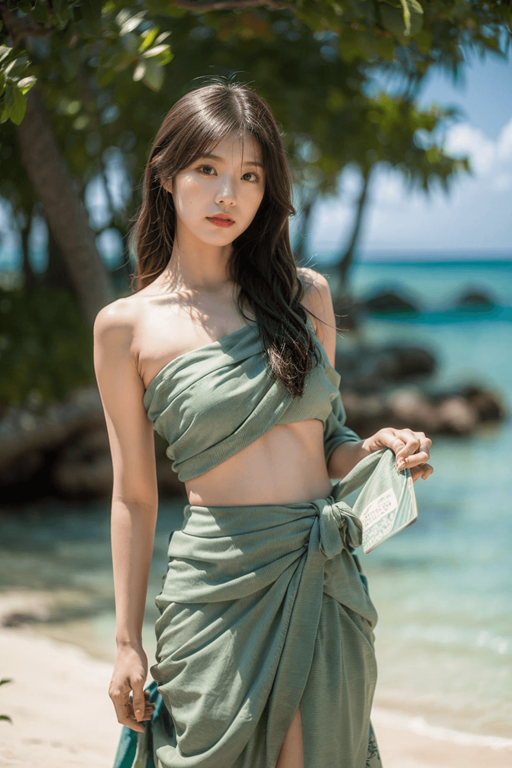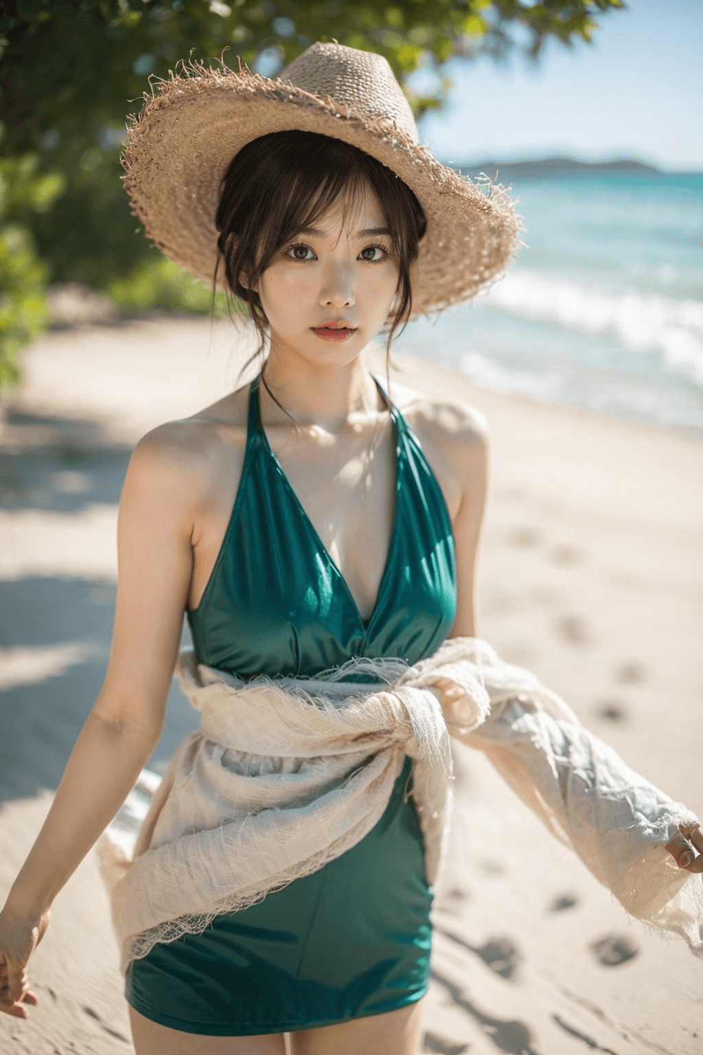 水着を着たカットの後に、こういった写真があれば、撮影のストーリー感も見せられて良いプロンプトかと思います。