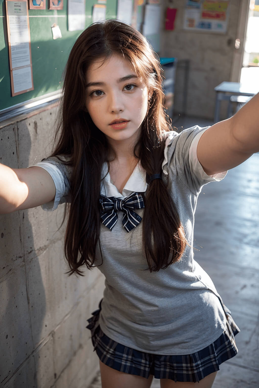 また、Selfie(自撮り)のプロンプトでも、上から撮影している雰囲気を生成できます。